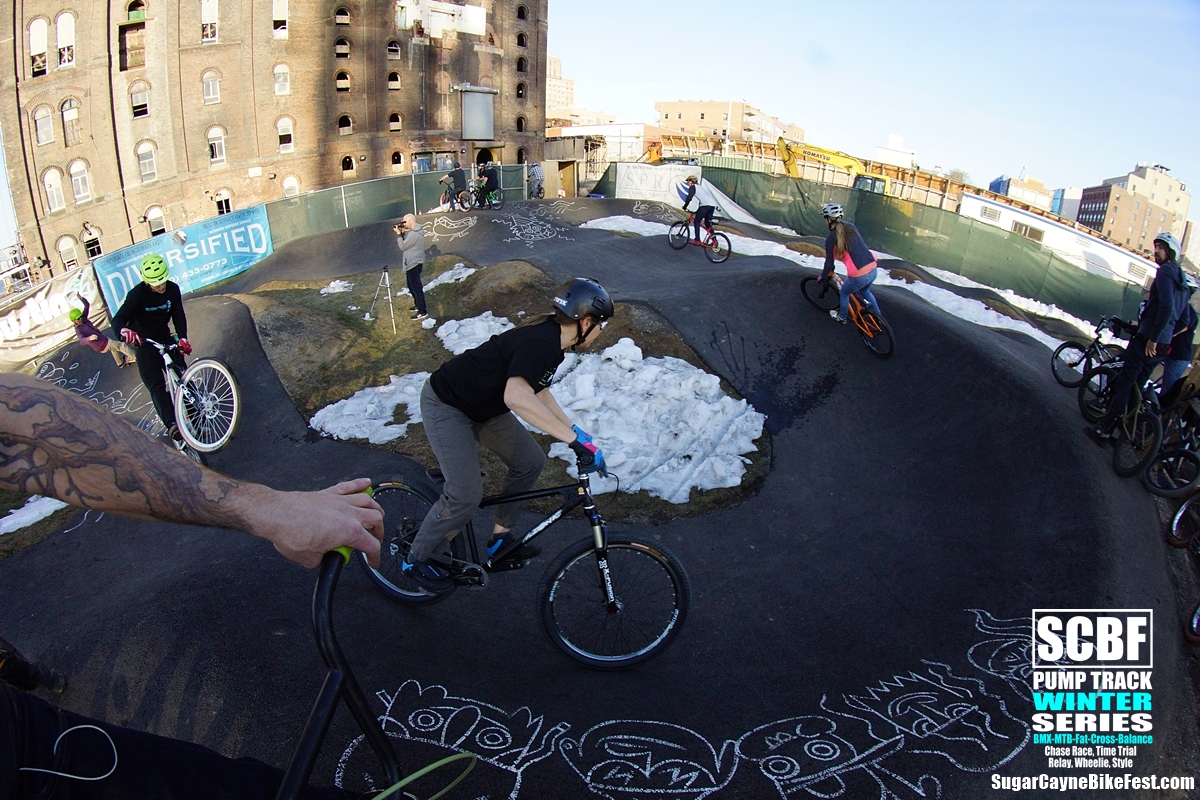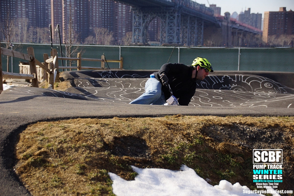 We were finally able to have round #4 of the winter series event at Brooklyn Bike Park and we couldn’t pick a nicer day! About 2 feet of snow melted within a week plus a little shoveling the day before the event and the track was ready for some time trial action!